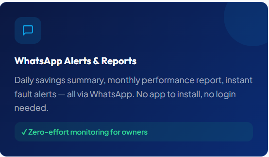 30,000+ installations. ISO 9001:2015 certified. Government-recognised. Now supercharged with AI that monitors, predicts, and protects your solar investment.